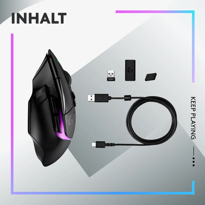 G502 X PLUS LIGHTSPEED Kabellose Gaming-Maus Abdeckung für DPI-Wechseltaste USB-C-Ladekabel LIGHTSPEEDUSB-A-EMPFÄNGER USB-Verlängerungsadapter Bedienungsanleitung