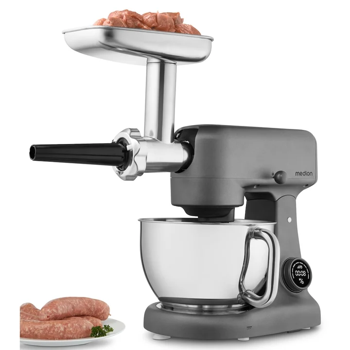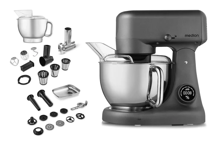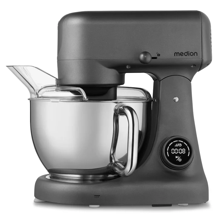 LIFE Digitale Küchenmaschine MD12600, Küchenmaschine, Schwarz, Silber, Grau