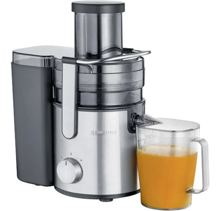 Der Severin ES 3570 ist ein robuster Zentrifugal-Entsafter mit starker Saftausbeute, besonders bei festen Zutaten wie Roter Bete. Die Edelstahlverarbeitung und einfache Bedienbarkeit zeichnen das Gerät aus. Der breite Einfüllschacht ist praktisch für die Nutzung von großen Zutaten, ohne sie vorher zu zerkleinern. Allerdings sind die Reinigung des Geräts und die relativ hohe Lautstärke im Betrieb negativ zu erwähnen.Vorteile