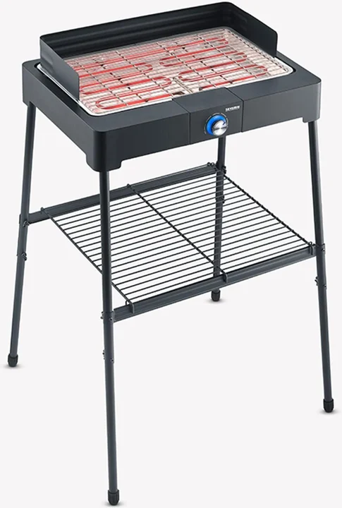 Standgrill mit Edelstahl-Grillrost und Standuntergestell und Ablagerost, Elektrogrill mit schnellem Grill-Start, Balkon Grill ohne Verbrennungsgefahr,