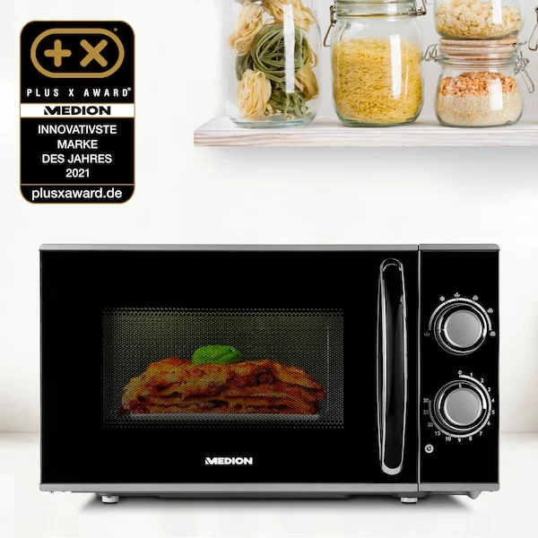 Die MEDION MD 15644 ist eine kompakte Solo-Mikrowelle für alle, die es simpel mögen. Zwei Drehregler, kein Display, keine Automatikprogramme – die Bedienung ist selbsterklärend. Mit 17 Litern Fassungsvermögen und 700 Watt eignet sie sich gut für Singles oder kleine Haushalte. Auftauen und Garen von Tiefkühlkost klappen ordentlich, beim Erwärmen zeigt sich jedoch ein spürbares Temperaturgefälle. Der glatte Innenraum lässt sich einfach abwischen. Wer auf Grill, Display oder Automatikprogramme verzichten kann und eine günstige, pflegeleichte Mikrowelle für den täglichen Grundbedarf sucht, liegt hier richtig.Vorteile