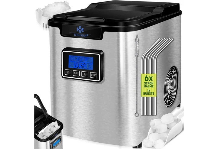 Der Kesser Ice Maker zeigt im Test Licht und Schatten. Die Maschine punktet mit solider Verarbeitung, einem präzisen Timer und einem effizienten Reinigungsmodus. Akustische Hinweise erleichtern die Nutzung. Allerdings ist die Bedienung verwirrend, da ein klarer Startknopf fehlt und die Anleitung unzureichend ist. Die Eiswürfel sind dünn und schmelzen schnell, was die Qualität beeinträchtigt. Der Wasserablauf ist unpraktisch positioniert und die Lautstärke im mittleren Bereich. Für Nutzer, die Wert auf exakte Steuerung und Komfort legen, kann der Ice Maker dennoch interessant sein, während andere Geräte im Vergleich alltagstauglicher sind.Vorteile
