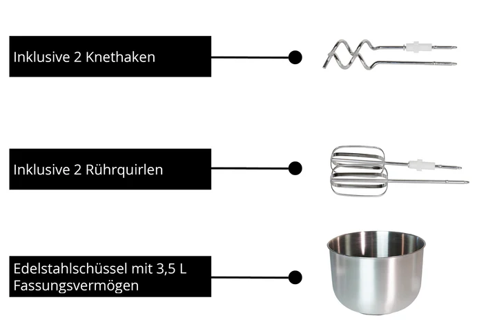 Handmixer · Schlagen · Kneten · Mixen · Rührer · Whisking · 0,9 m · 3,5 l · Drehregler